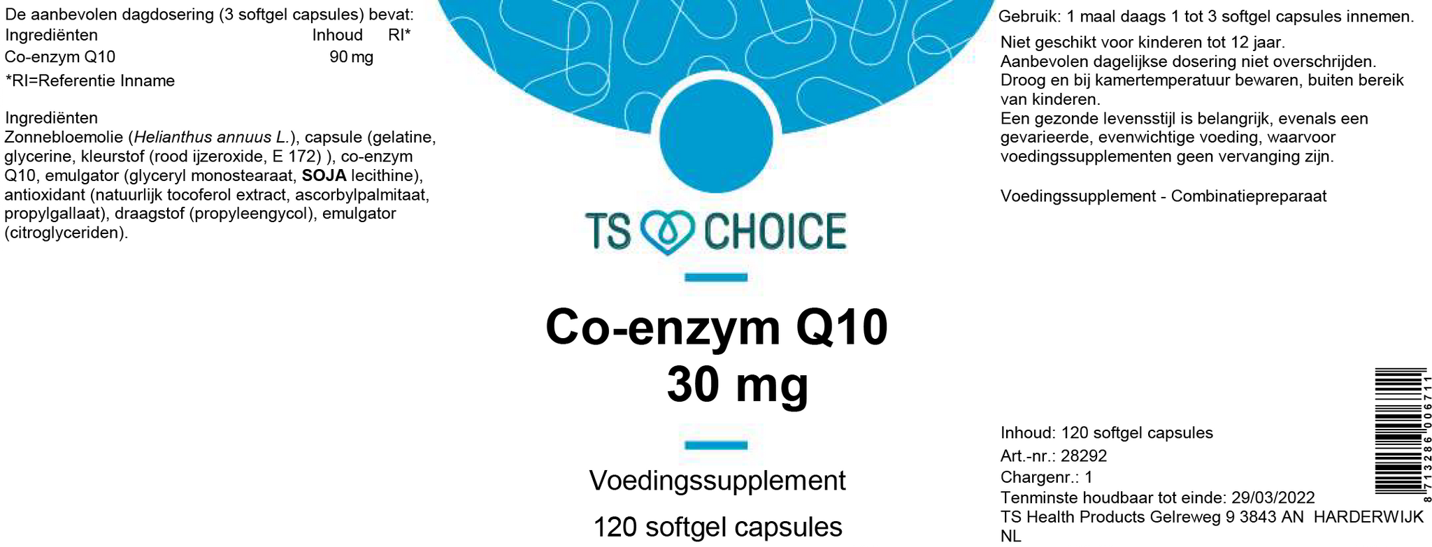 Heb je soms het gevoel dat je meer van jezelf vraagt dan je lichaam kan geven? Of wil je je dagelijkse energie ondersteunen op een natuurlijke manier? TS CHOICE CO-ENZYM Q10 100 PLUS is speciaal ontwikkeld voor wie bewust met zijn vitaliteit omgaat en kiest voor een praktische aanvulling in één capsule per dag.