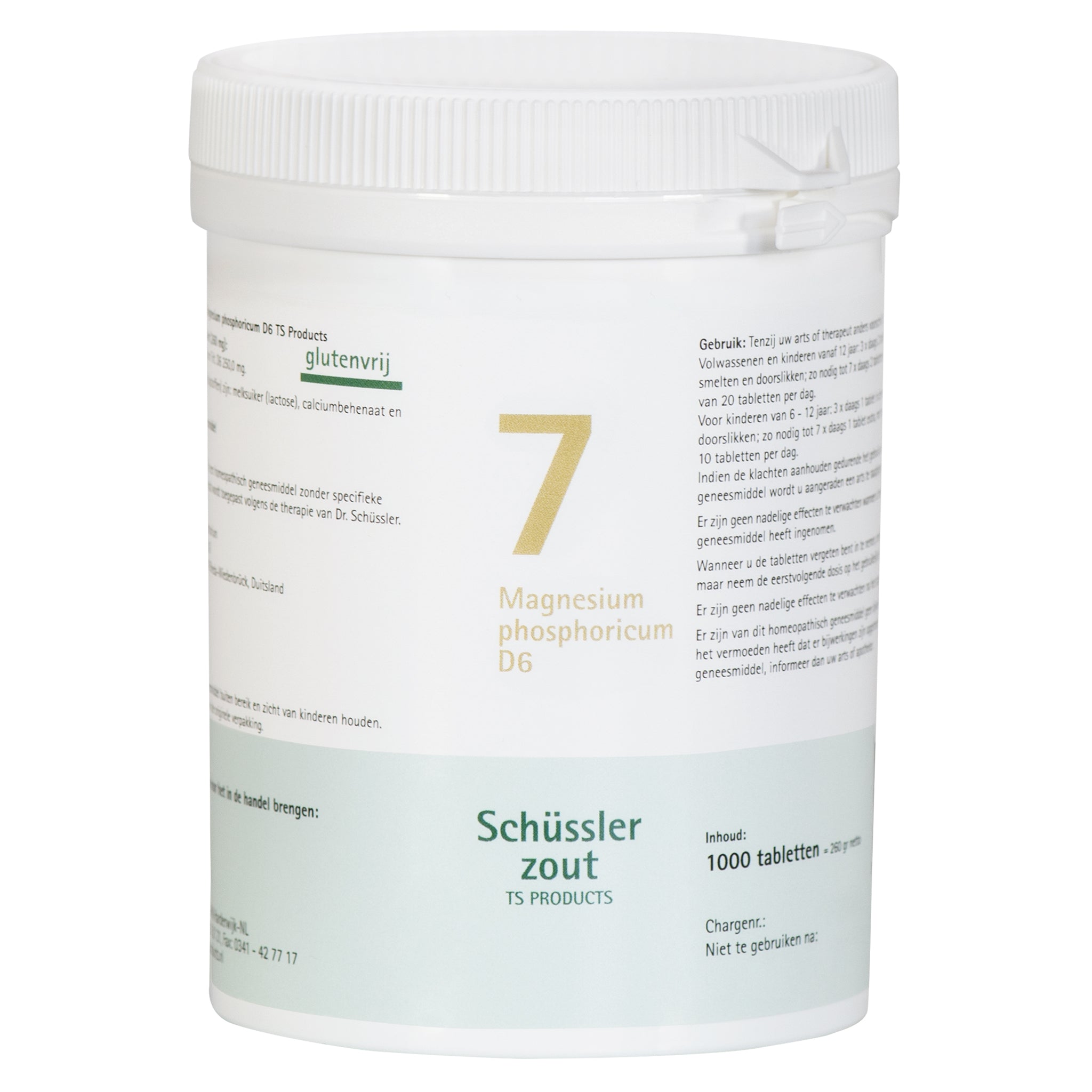 Schüsslerzout TS Products Nr. 7 – Magnesium phosphoricum D6 is verkrijgbaar in tabletvorm en geschikt voor gebruik door zowel volwassenen als kinderen, mits toegepast volgens de gebruiksaanwijzing.